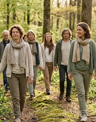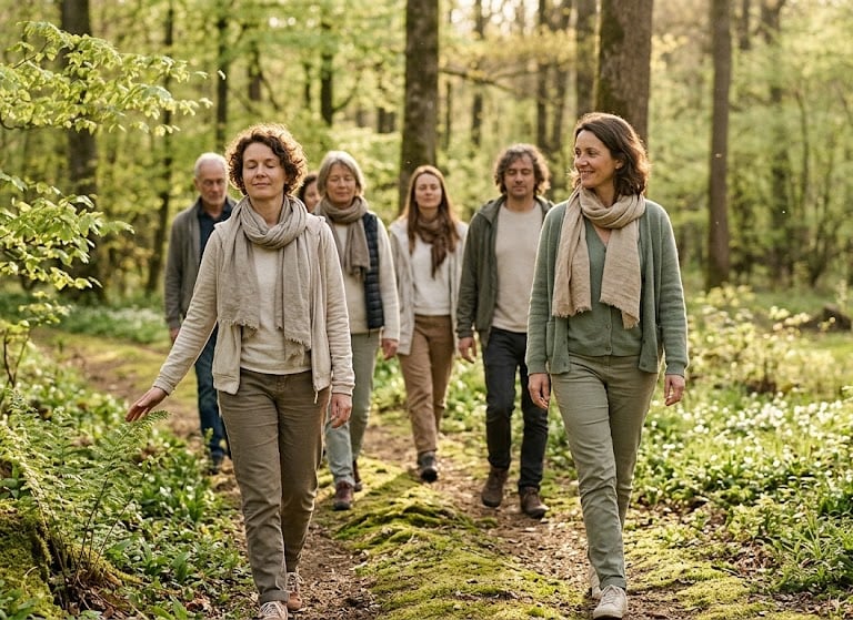 Favoriser le lien social : En séance collective, la sophro-balade devient un moment de partage et de convivialité, luttant ainsi contre l'isolement.